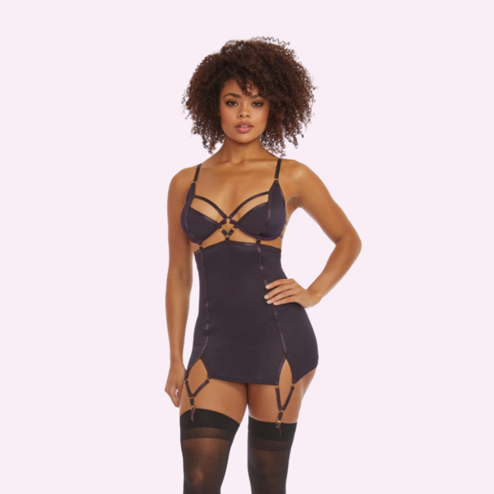 Play to your inner femme fatale in this rich purple garter slip. Power mesh hugs every curve for subtle, all-over body smoothing while satin trim adds a feminine but fierce touch. Pair this piece with your favorite thigh highs and dare to make the first move.
